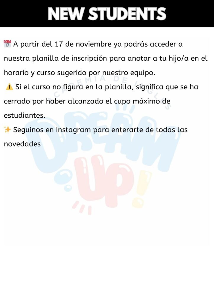 Gracias por contactarte con Dream Up! Academia de Inglés ❤️💙